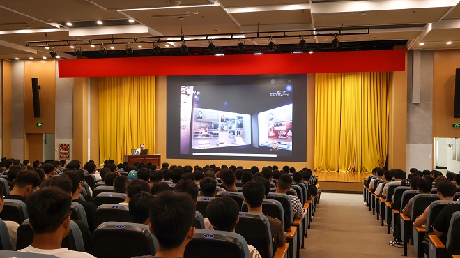 9月8日,现代汽车系以“赓续红色血脉,铸就汽车强国梦”为主题,面向2025级680余名新生开展理想信念专题入学教育,现代汽车系辅导员李雪颖主讲。
