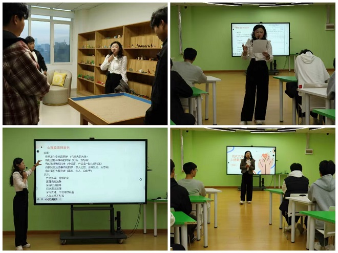 培训伊始,主讲人李雪颖以心理委员的职责与工作内容”为核心,结合高校常见心理案例展开互动教学。为畅通班级心理诉求反馈路径,培训详细介绍了“解忧清单”的性质、作用与填写规范,将其作为朋辈帮扶与教师指导的重要衔接载体。同步开展的大学生心理指导中心开放日活动,让心理委员实地熟悉心理健康服务场景。在李雪颖带领下,大家依次参观了沙盘室、音乐放松室、情绪宣泄室等功能空间,了解各类专业设备的使用方法与服务流程,直观感受“专业环境+科学干预”的心理支持模式。